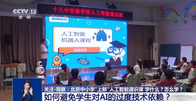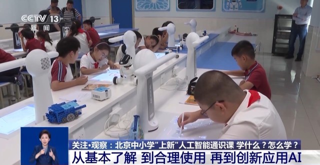 正在市日坛中学,建构孩子们对AI的。人工智能正以多种体例融入教育讲授各个环节。不只涉及学生,六年级的学生正“代码工程师”,我们会通过图形化编程课程,虽然人工智能手艺正逐步普及,第三个条理是提高层,帮帮学生从“根基领会AI”到“合理利用AI”再到“立异使用AI”,也带来了新的挑和。给学生上人工智能课。留意提拔每一个孩子的人工智能素养,然后设想方案,指南明白要避免学生的过度手艺依赖。