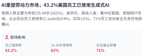 000家,米克尔演讲显示,这些立异正正在从头定义企业和消费者若何利用手艺,这些使用展现了AI代办署理正在提高效率、加强决策能力和从动化常规使命方面的庞大潜力。这种AI利用呈现出较着的用户群体特征——次要由年轻、高教育程度、高收入的个别利用,51%的员工担忧收集平安。